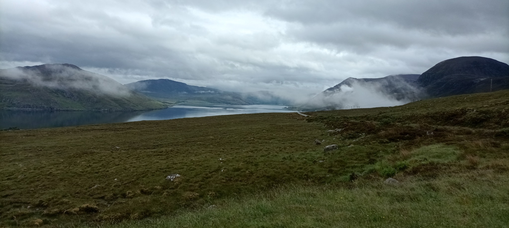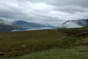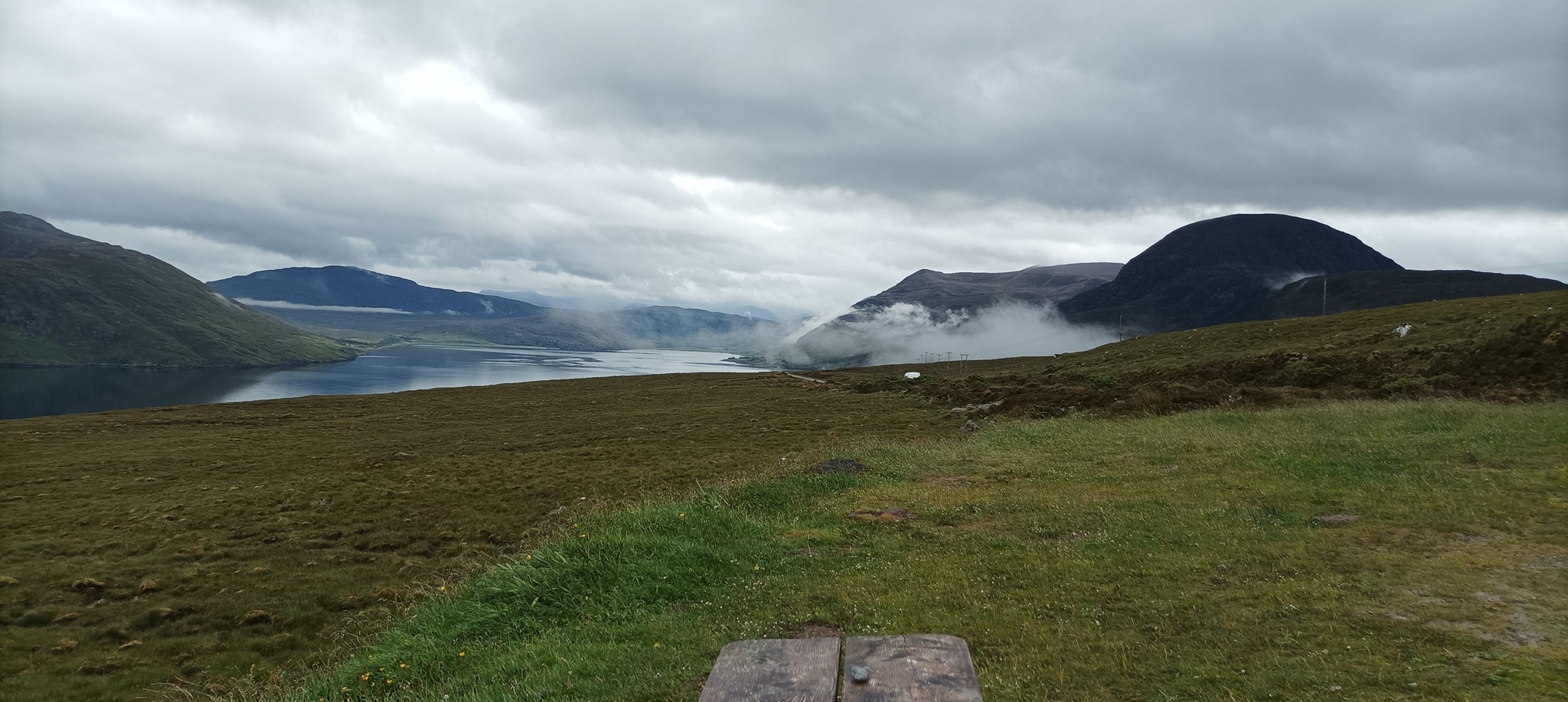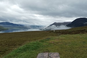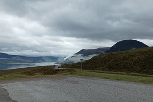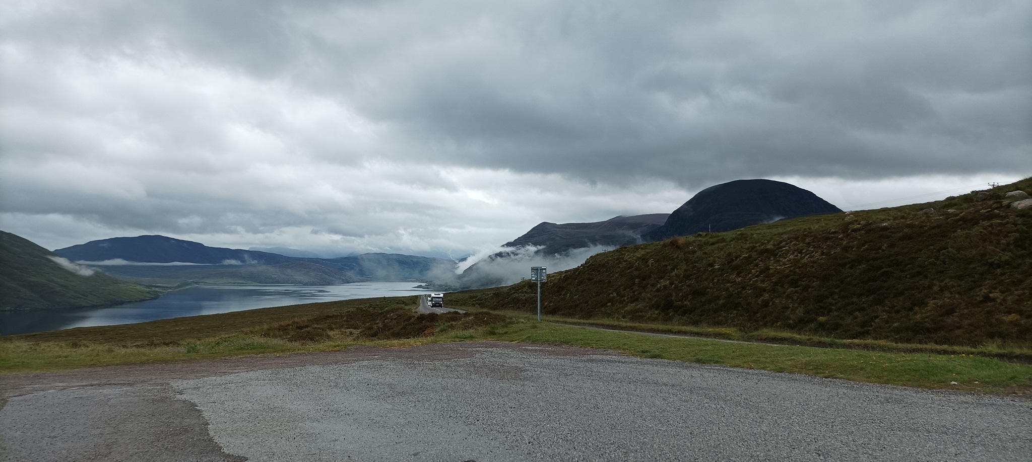 Nach dem schönen Abend gestern haben wir erst mal ausgeschlafen. Eigentlich sollte es ein kurzer Tag werden mit lediglich 140 km über die A832 die Küste entlang und über Gairloch nach Shieldaig. Es war sehr windig und nebelig. Wie ihr auf den Fotos sehen könnt, zieht so eine Nebel oder Wolkenbank mal eben durch ein Tal während einer Zigarettenpause. Morgen soll es über den "legenderen" Applecross gehen. Melanie hat viele Videos geschaut und einen riesigen Respekt. Ab Kinlochewe haben wir sehr viele Rennradfahrer gesehen.