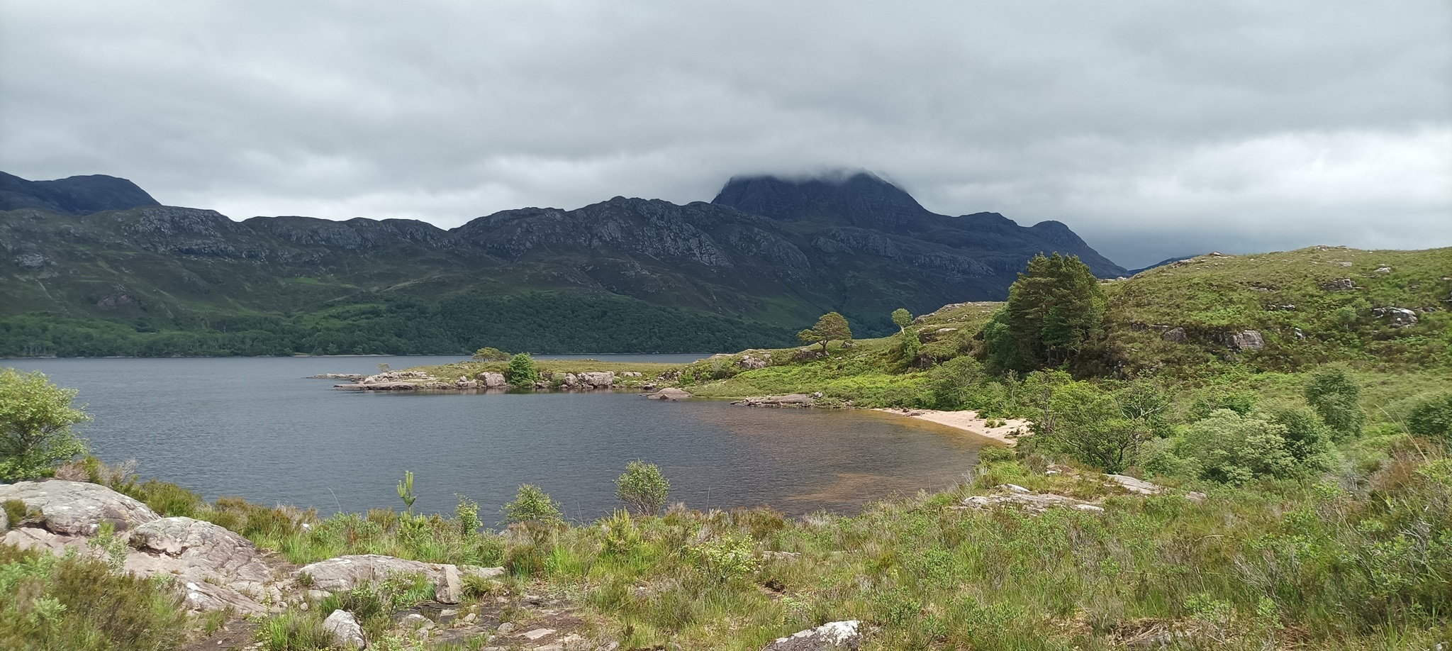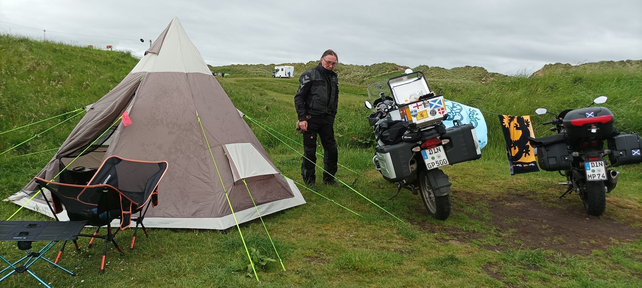 Also die Strecke retour über Torridon, Kinlochewe nähe Gairloch an der A8021 der Campingplatz The Sand aufgesucht, wo wir 2019 schon mal waren. Die Küste entlang gibt es jede Menge Campingplätze, aber erst in 30 km Entfernung war The Sand der erste der nicht ausgebucht war. Das ewige Stop and Go an den Plätzen hat uns ziemlich geschlaucht. In Gairloch waren wir kurz vor Ladenschluss noch unser obligatorisches Steak und Salat kaufen. Zeltaufbau bei kaltem Wind und gelegentlichem Nieselregen.