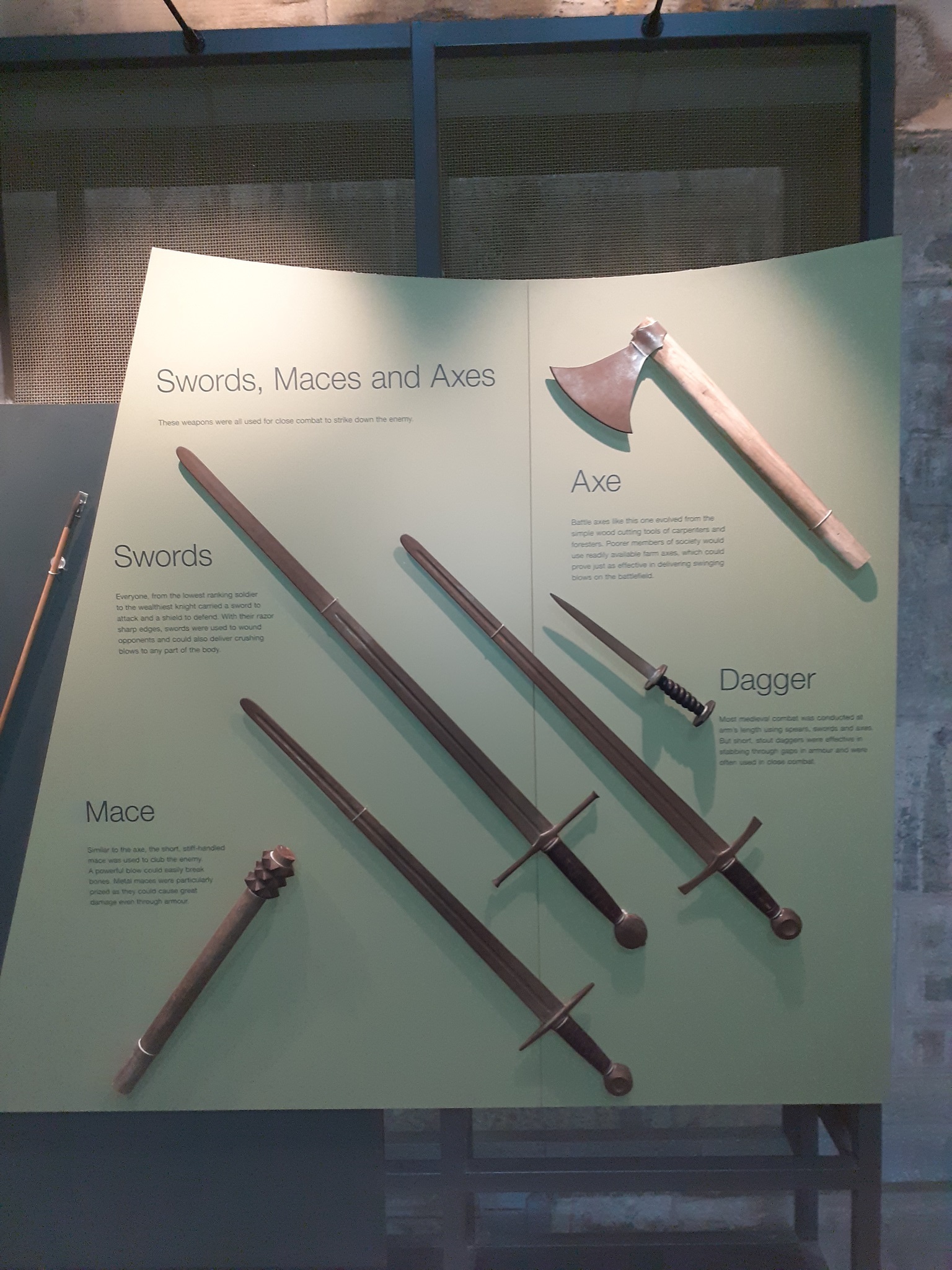 Das Schwert von William Wallace ist schartig und sehr schmal vom ewigen nachschleifen bzw. schärfen der Klinge. Der Griff ist abgenutzt und speckig Schwarz. (Selbst wenn es nicht das original Wallace Schwert ist, es ist das Schwert eines Kriegers.)