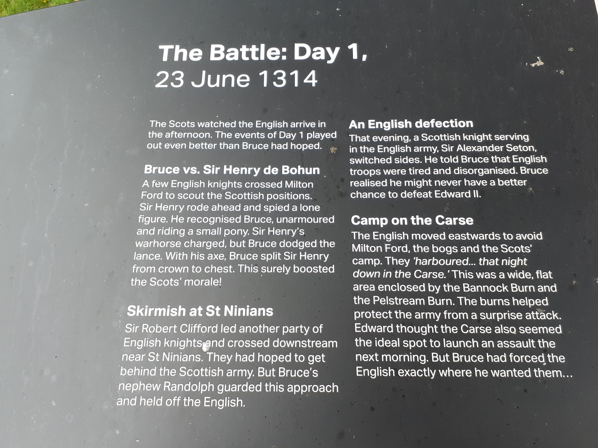 Die Schlacht von Bannockburn am 23. und 24. Juni 1314 war eine der entscheidenden Schlachten in den Schottischen Unabhängigkeitskriegen des späten 13. und des 14. Jahrhunderts.