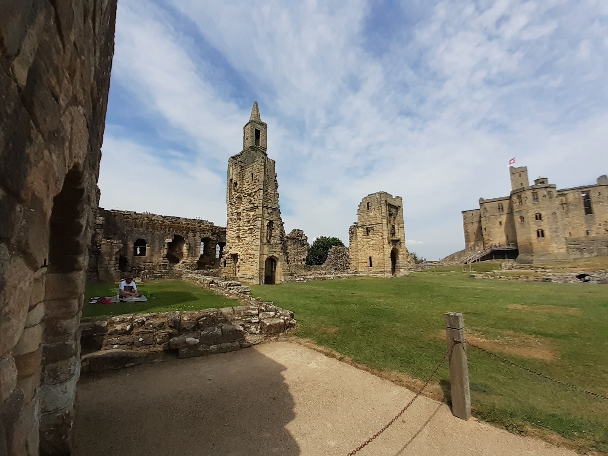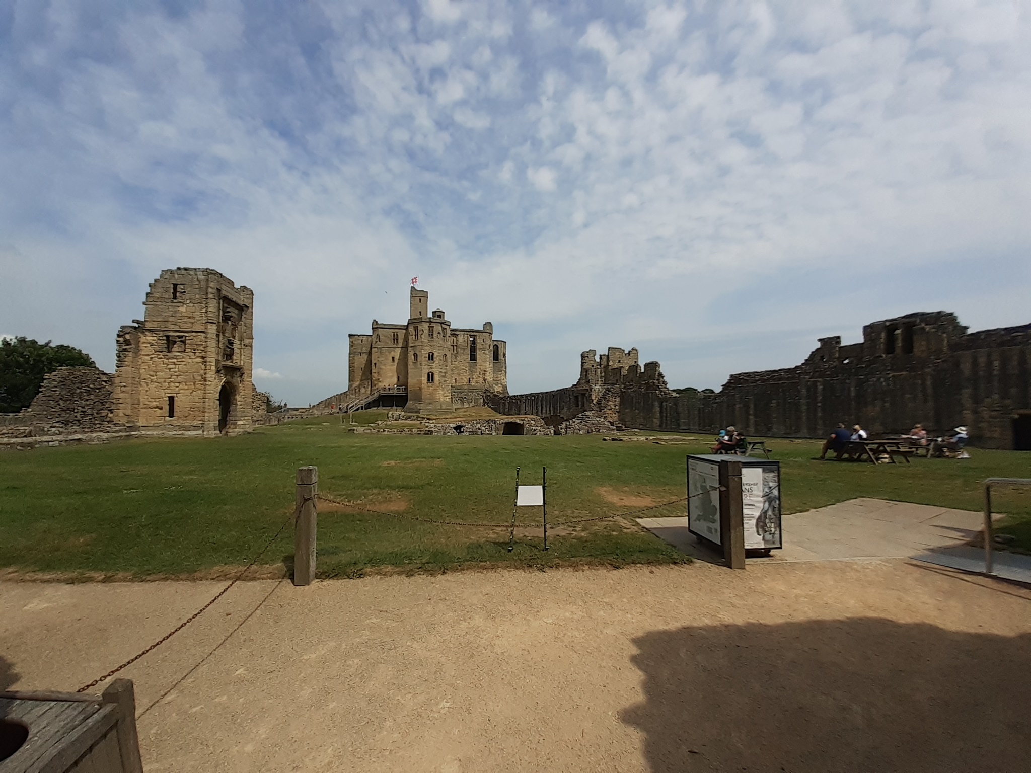 Abbau bei feinstem Sonnenschein ging es auf unsere letzte Etappe auf englischem Boden. Auf dem Weg haben wir Warkworth Castle besucht. Eine schöne Ruine direkt an der Coastal Route.
