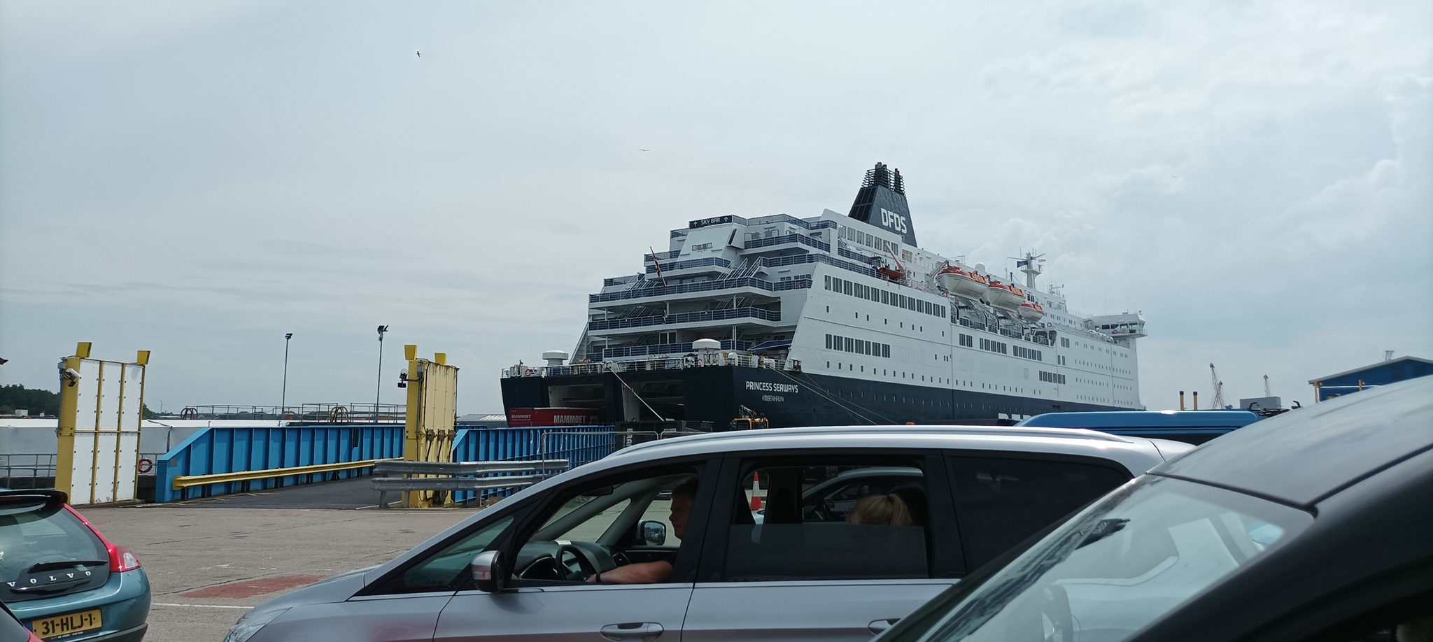 An der Fähre angekommen hatten wir zum erstenmal so richtig Stau am Zoll und Gepäckkontrolle. Alle wurden kontrolliert.