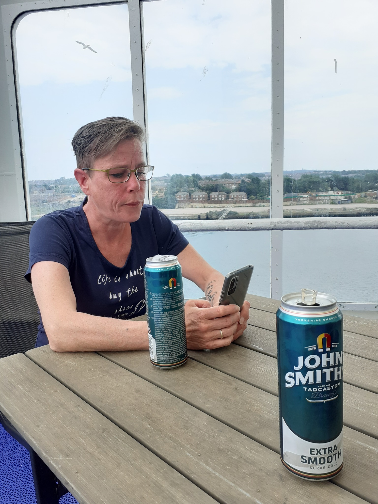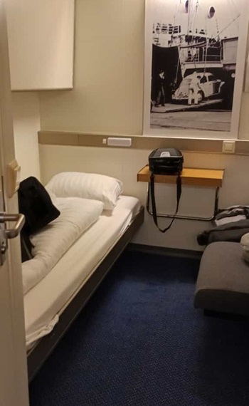 Erst mal ab in die Kabine und eine ordentliche Dusche. Dieses mal wieder mit Etagenbett, Jugendherberge lässt grüßen. Die Dusche ist uns ganz wichtig, wie schon mal erwähnt erkennt man manche Motorradfahrer auf der Fähre an der Kleidung oder am Geruch.