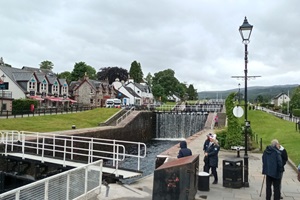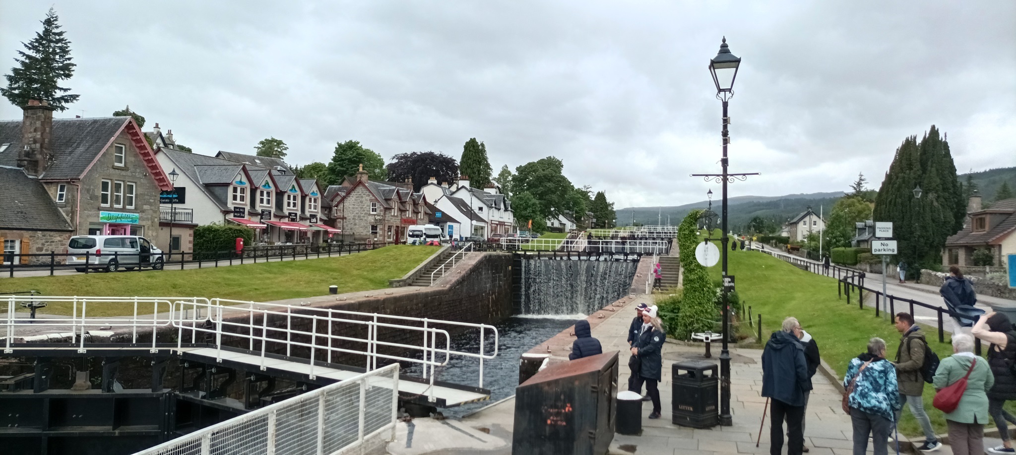 Mit dem Blick auf Fort Augustus ging es bergab über kurvige Strassen zum Caledonian Canal mit seinen berühmten Schleusen.