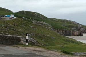 Nach einer windfreien Nacht sind wir erholt aufgewacht. Beim packen haben wir uns viel Zeit gelassen, so das wir das Zelt trocken verstauen konnten. Die wunderschöne Nordküste entlang gen Westen. Strände wie in der Karibik. Kurz nach dem Bettyhill Viewpoint langezogene Rechts und dann in der langezogenen links lohnt es sich mal anzuhalten.